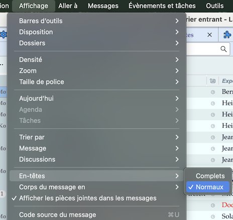 I didn't ask you to change de "verticale à classique". J'ai proposé d'aller au menu "Affichage" > "En-têtes" et de sélectionner "Normaux" Si le menu "Affichage" est bloqué fais un test en démarrant TB en mode > Aide > Dépannage ..