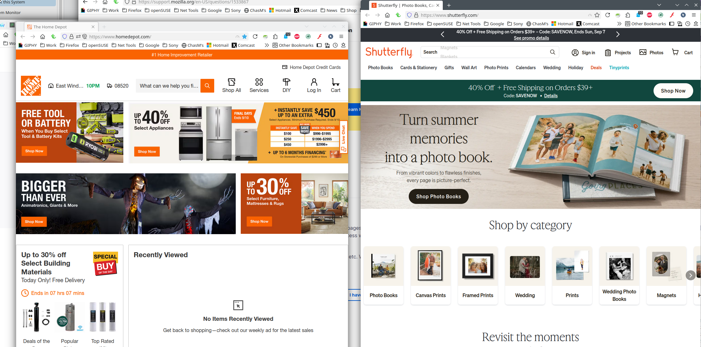 I can get the initial homepage for both home depot and Shutterfly - but when I try to sign in to Shutterfly, it goes nowhere. Homedepot shows the page you recorded, but then it quickly flicks to an 'Oops!' comment, and will go no further.