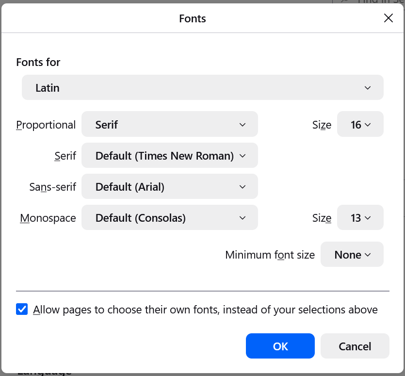 - In the Minimum font size drop-down, select the minimum size in pixels in which all text must be displayed.