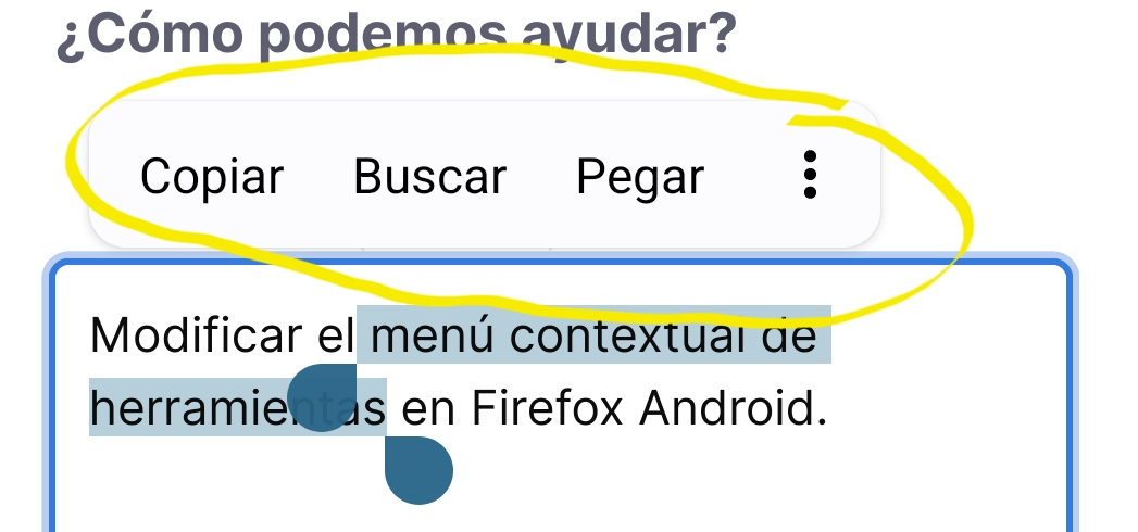 ¿Se puede modificar el menú contextual de herramientas en Firefox Android?