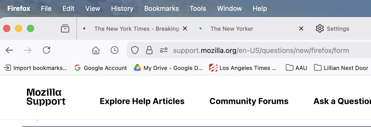 I recently purchased a new MacBook Pro with the M5 chip. I am a Firefox user for many years as I prefer it to Safari or Chrome. I noticed that some of the bookmark links are having issues loading. There is a little dot that moves back and forth L to R next to the site name in the toolbar [see screenshot]. Some of the pages do not load and just stay blank. I reached out to Apple and they recommended to reach out to Firefox re updates as perhaps this issue may be addressed.