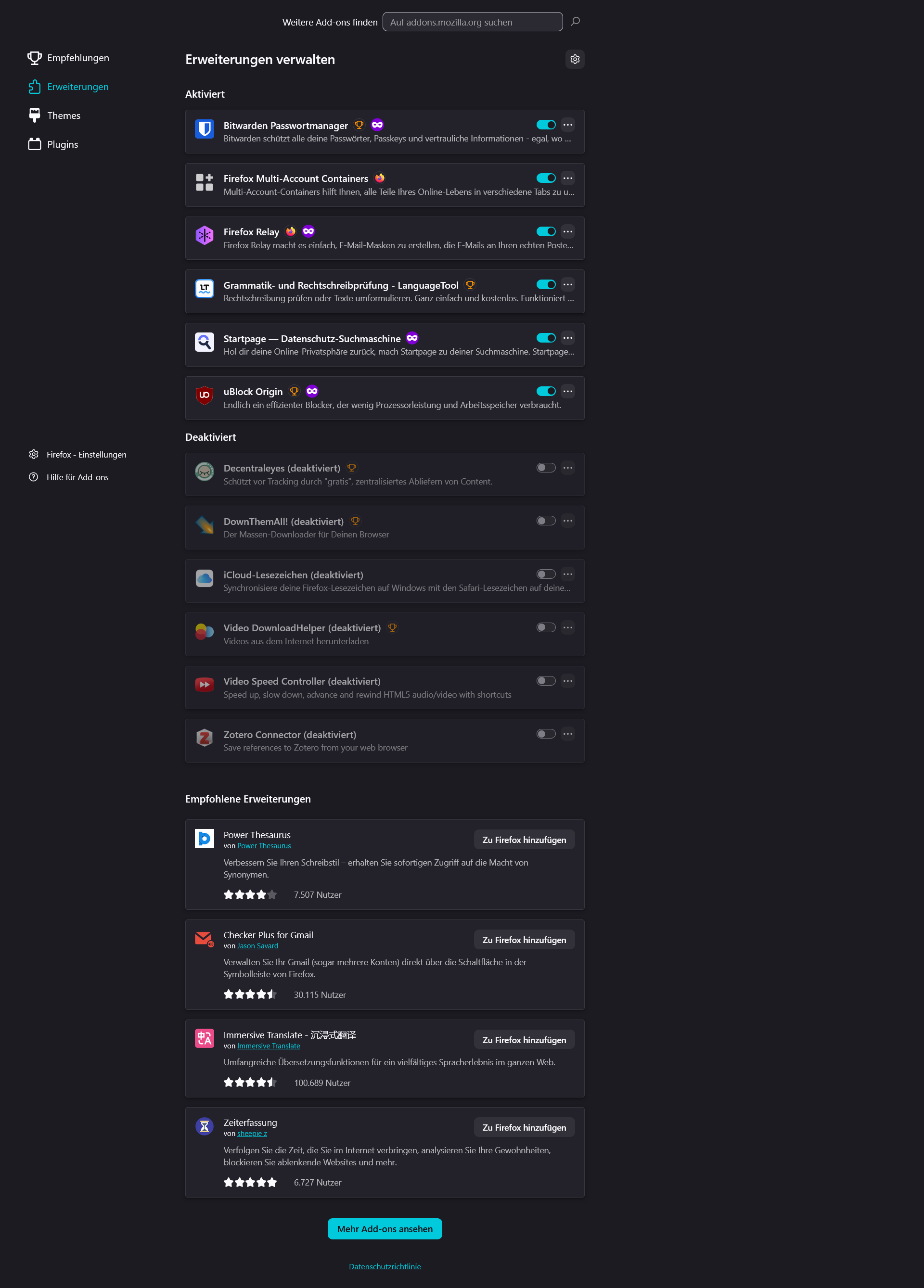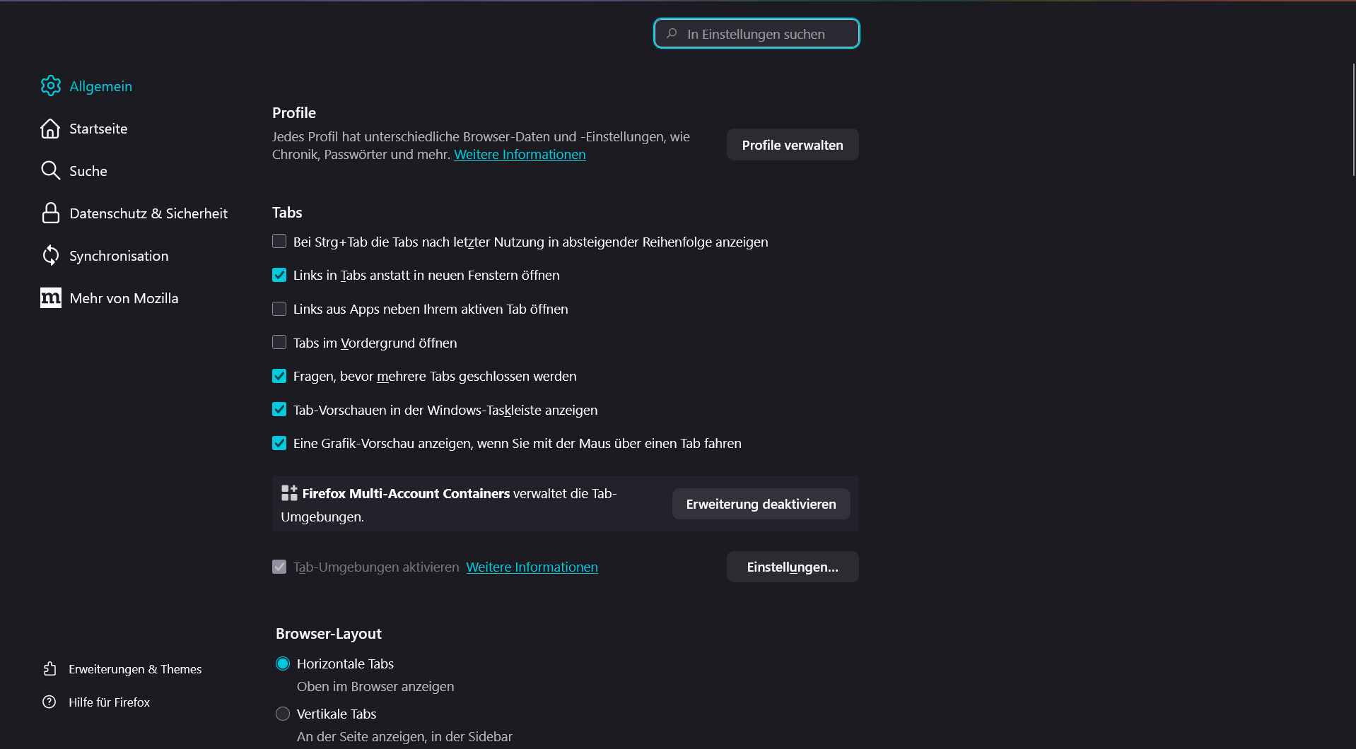 The latter does changes to the about:config. A screenshot of my settings, my config, and my Add-ons is attached.