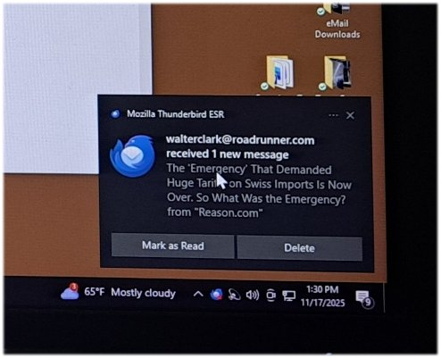 Ed, Shown below is the feature I'm talking about... When you click on "Delete," it's because you don't want to do email at this time. Yet . . . Thunderbird puts itself up anyway. That is just as many clicks to delete a message as if that feature didn't exist. Can you forward this mistake to the programmers? When you click on Delete. Just delete it. For heavens sake don't interrupt what I'm doing. Walt