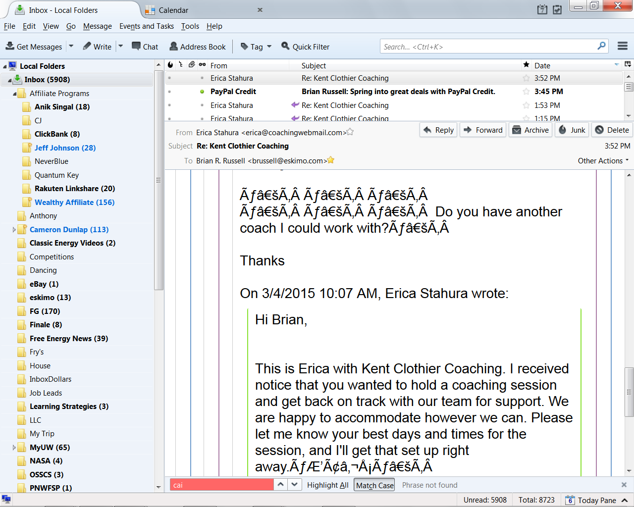 If I change the character encoding to "unicode" that will get rid of the extraneous characters, but the fix seems to be local to that viewing of that particular message. If I move to another message then the extraneous characters reappear and when I go to the view menu if find Thunderbird has reverted to "western" encoding.