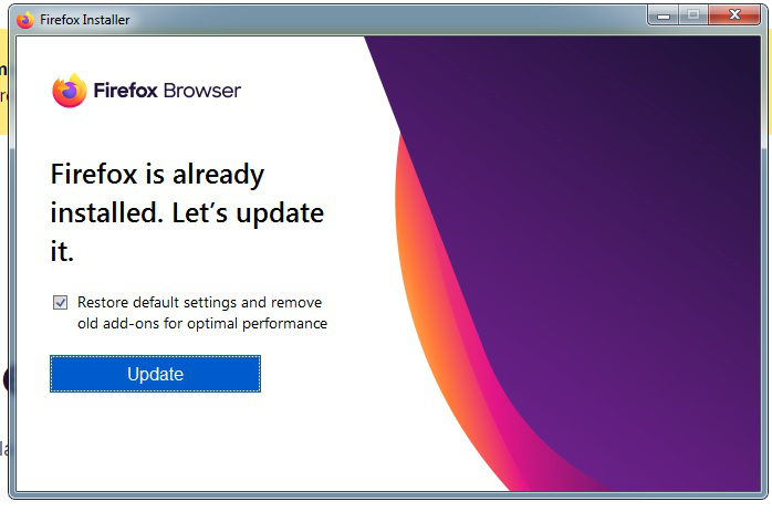 Yes Thank you for your response. I forgot to look for the local folders, Deleted everything I could find under Programs and Programs x86. Even the shortcuts. Restarted, and tried to run the Firefox installer again, and got the same error message. It says "Firefox is already installed. Let's update it." And asks me to restore default settings and remove old add-ons for optimal performance.