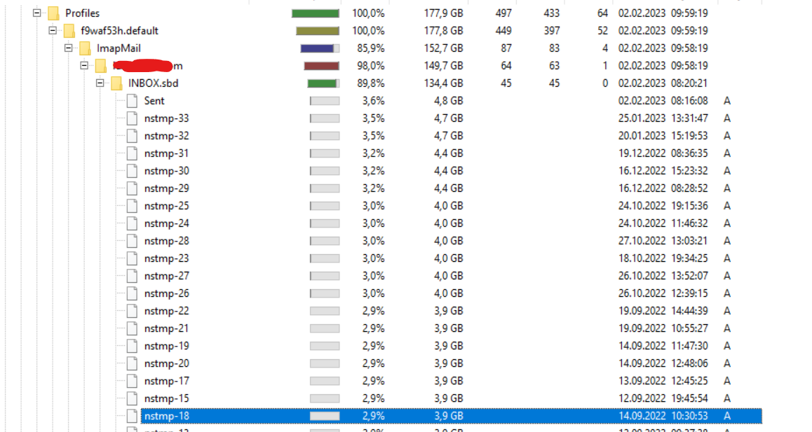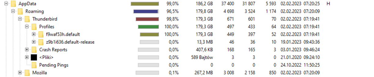Problem 1. Thunderbird takes up more and more space on the C drive. Currently 179 GB (!) I don't know what is the reason, I have 4 mailboxes