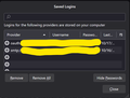 With this policy in place, I expect Thunderbird to disable the option to Show Passwords when going to Settings > Privacy and Security > Saved Passwords. However as seen in the screenshot I am able to click on the Show Passwords button; and the passwords are shown along with addtional blank entries that only appear when the Show Passwords button is clicked. The only work-around that I could find to this issue is to also set the following policy:
