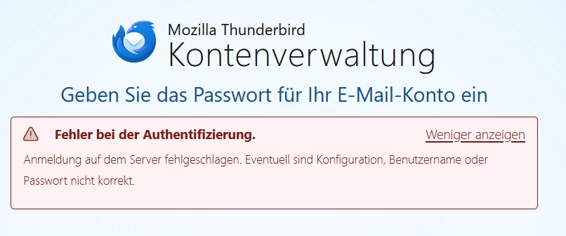 Bei der Integration in das Programm Thunderbird gibt es jedoch Schwierigkeiten, obwohl ich sämtliche Serverparameter