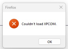 When I open Firefox in Windows 11 a small window appears that reads, "Firefox Couldn't load XPCOM. I have not found any solutions to stop this that work. Will Mozilla fix this?