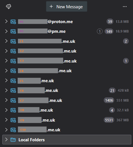 - Before any of the two steps above began, I deleted the accounts and data from Thunderbird. When Proton Mail Bridge has then finally resynced, I added the accounts back in again.