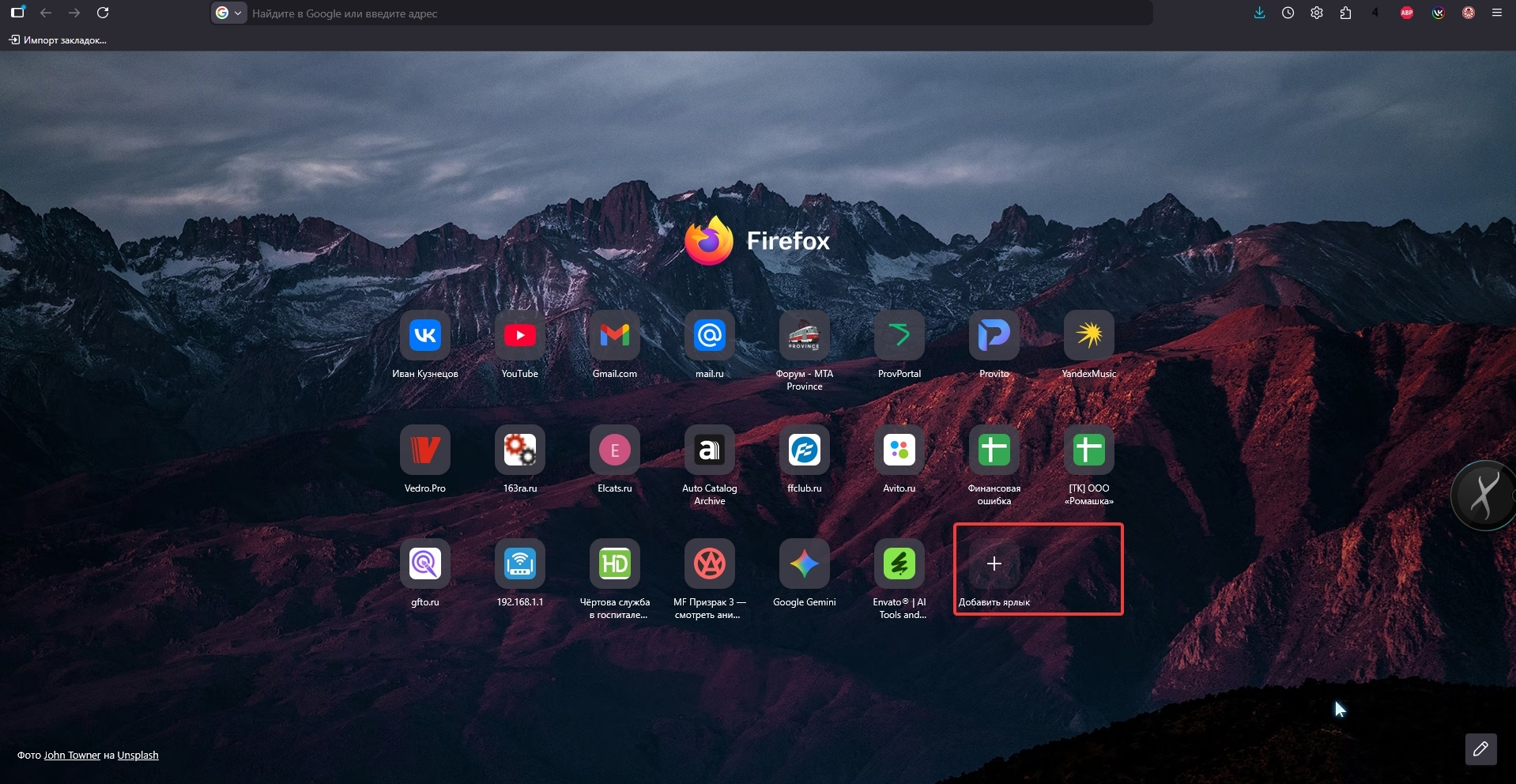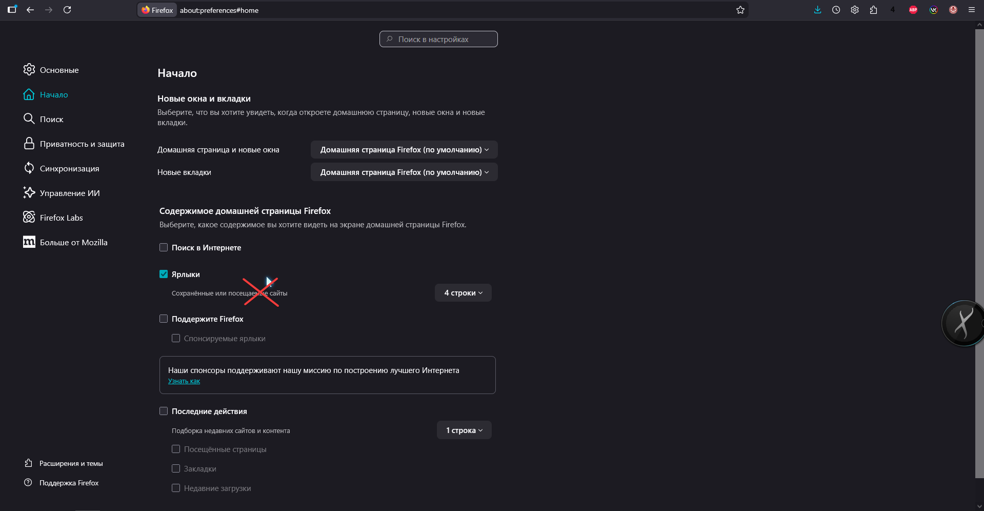 Не хватает дополнительных настроек для главного меню с сохраненными сайтами
