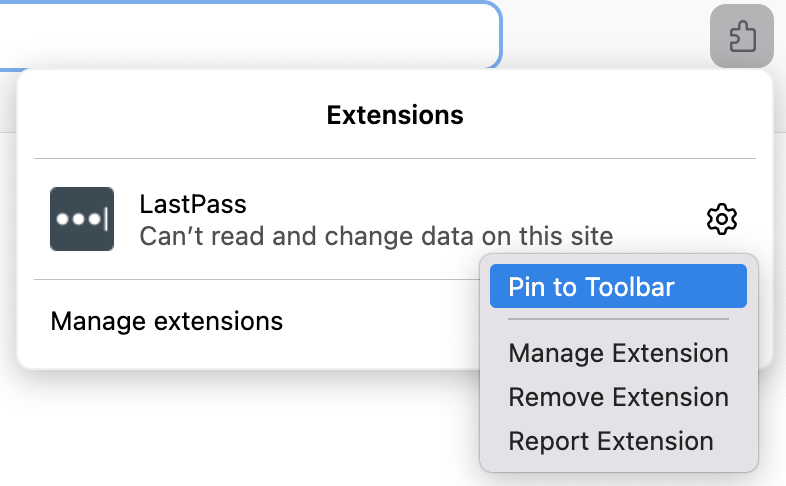 I get the following message when trying to get my LastPass Icon on the tool bar.