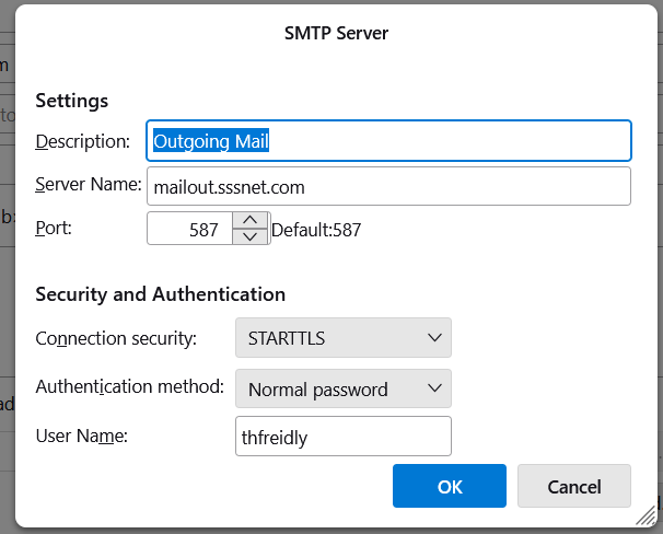 Still getting the same issue...clocking but won't send emails. My ISP is a local cable company and for some odd reason they state that the User Name not include the @domain after the name in the incoming & outgoing User Name fields. I do not use it in the Incoming POP3 server either, but it is receiving emails without, just not sending.