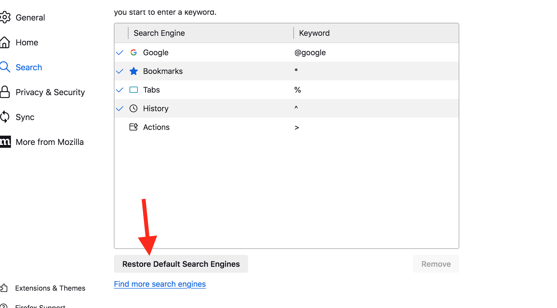 What happens when you restore default search? see screenshot