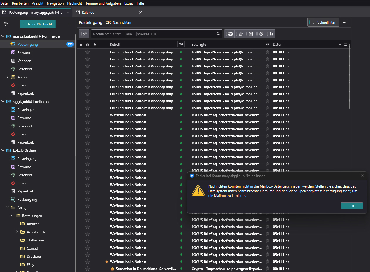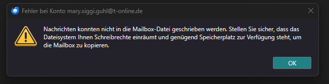 Messages could not be written to the mailbox file.