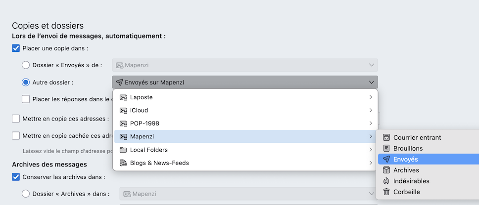 I hope you understand I simply want to record my messages on a "sent" folder...