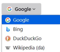 It is fine that it is possible to make Qwant the default search engine. However, this in my opinion is not enough. Currently, in the search engine selection drop-down the only options I have are Google, Bing, DuckDuckGo and Wikipedia.