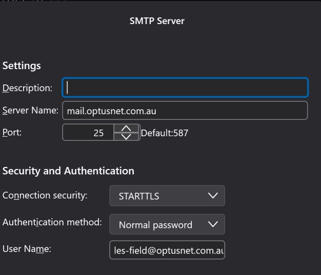 Is that issue with Optus -mail solved? Are all SMTP setting correct? Passwords also? Can I ask?