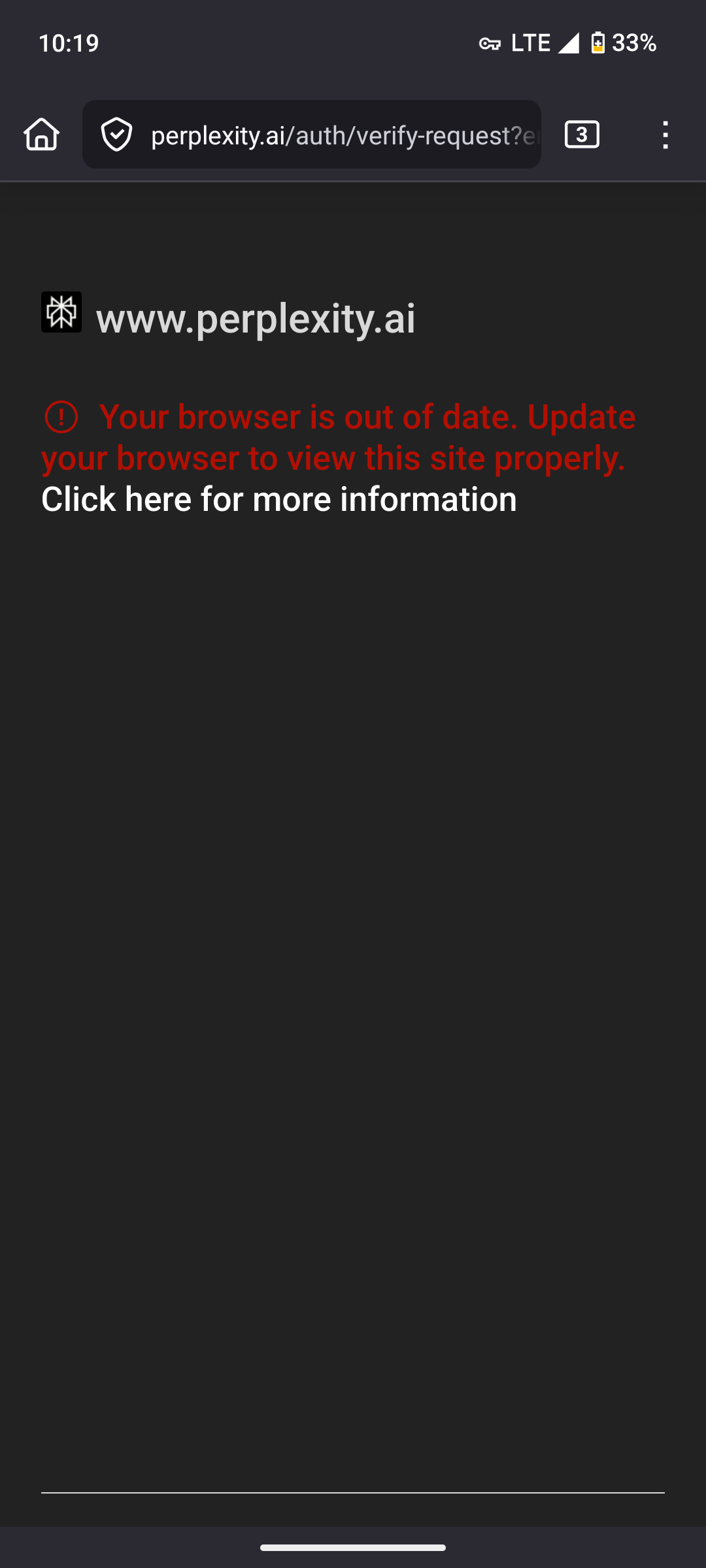 Perplexity AI says my browser is outdated