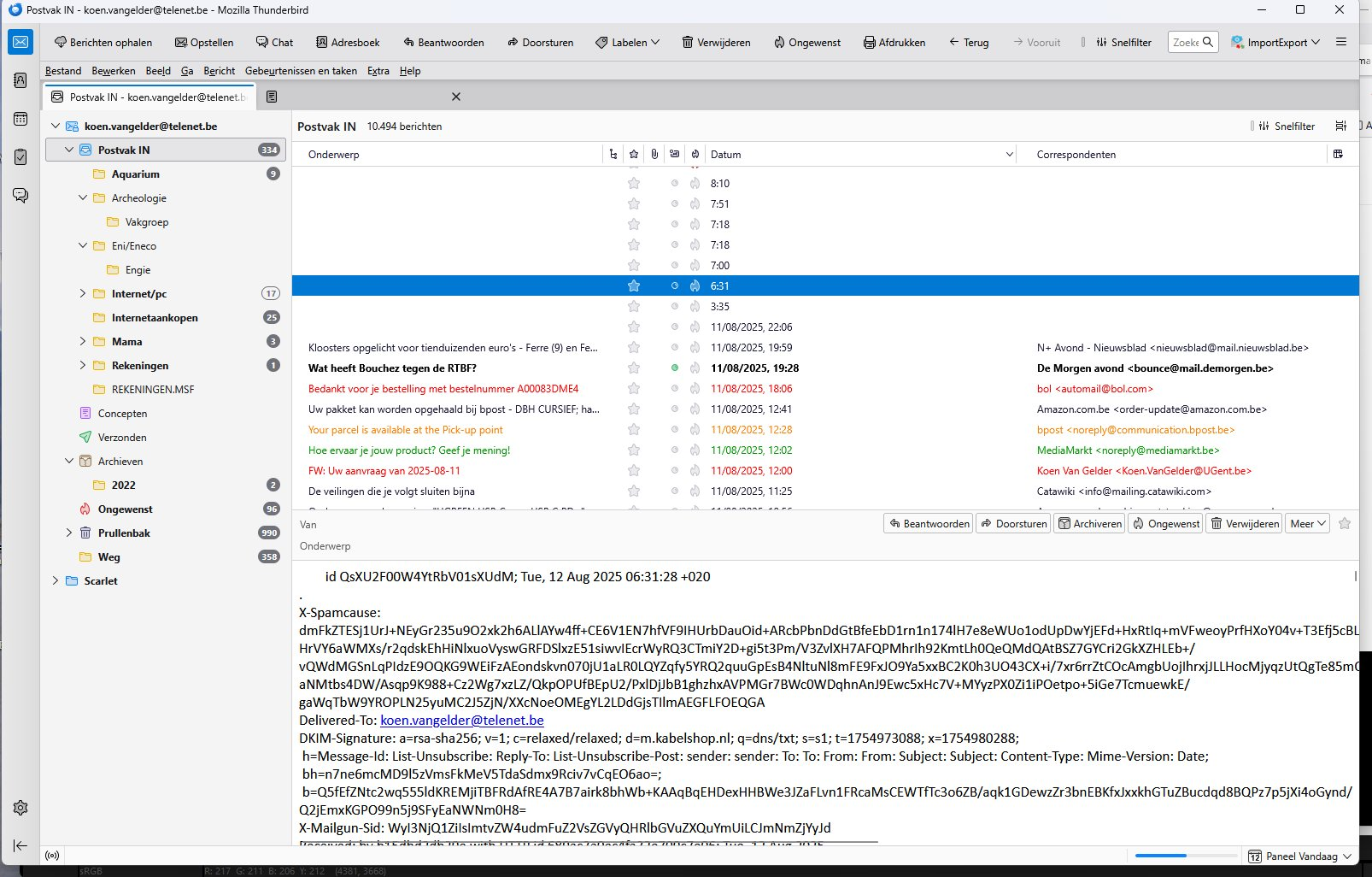 Plots zijn afzender en onderwerp verdwenen, ik krijg de hele html-tekst te zien (bitdefender)