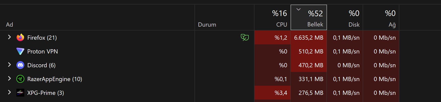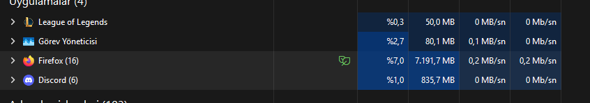 Firefox'un bellek kullanımı açık sekme sayısına, açık sayfaların yoğunluğuna ve kullandığınız uzantılara göre değişebilir.