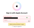 -> Error message "Failed to verify your identity. Try again" appears. See icloud.png