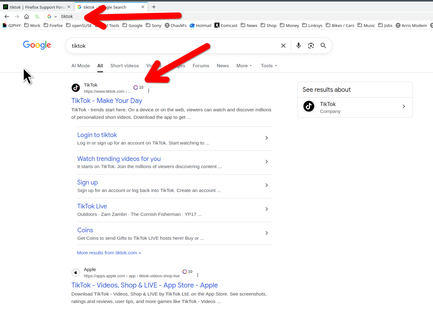 why is it that if i type tiktok in this firefox it will not work