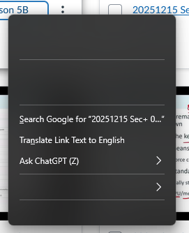 My browser was updated automatically last night and now when you right click anything it doesn't show a bunch of the options. Hovering does not reveal the text.