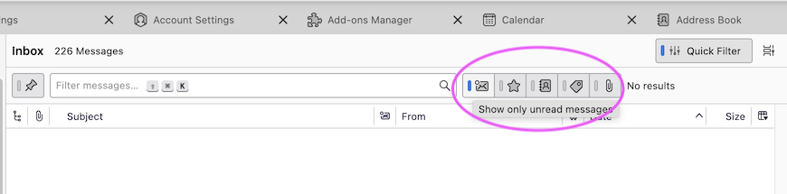 No messages show up in the inbox. If I run Thunderbird in troubleshot mode all the messages in the inbox show up. I suspect it might be something regarding filtering, but I do not know how to turn filtering off. Help.