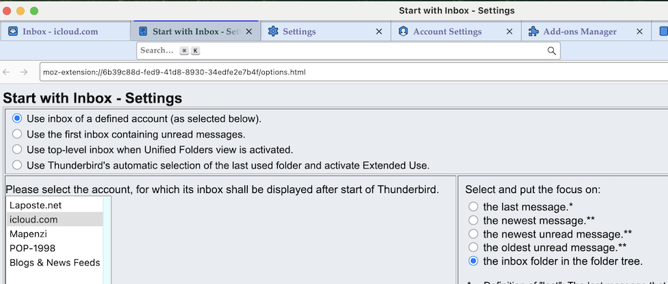 I need predictability where I can find it. Thunderbird opens how I left it, so I never know what's going to appear when I start it the next day. Isn't there some setting so that it always opens showing all 3 panes, regardless of my laziness at exit? It would also help with my autohotkey script if it knew what to expect. I suspect the lack of answers in my search suggests there is no such setting. How about a command line argument?