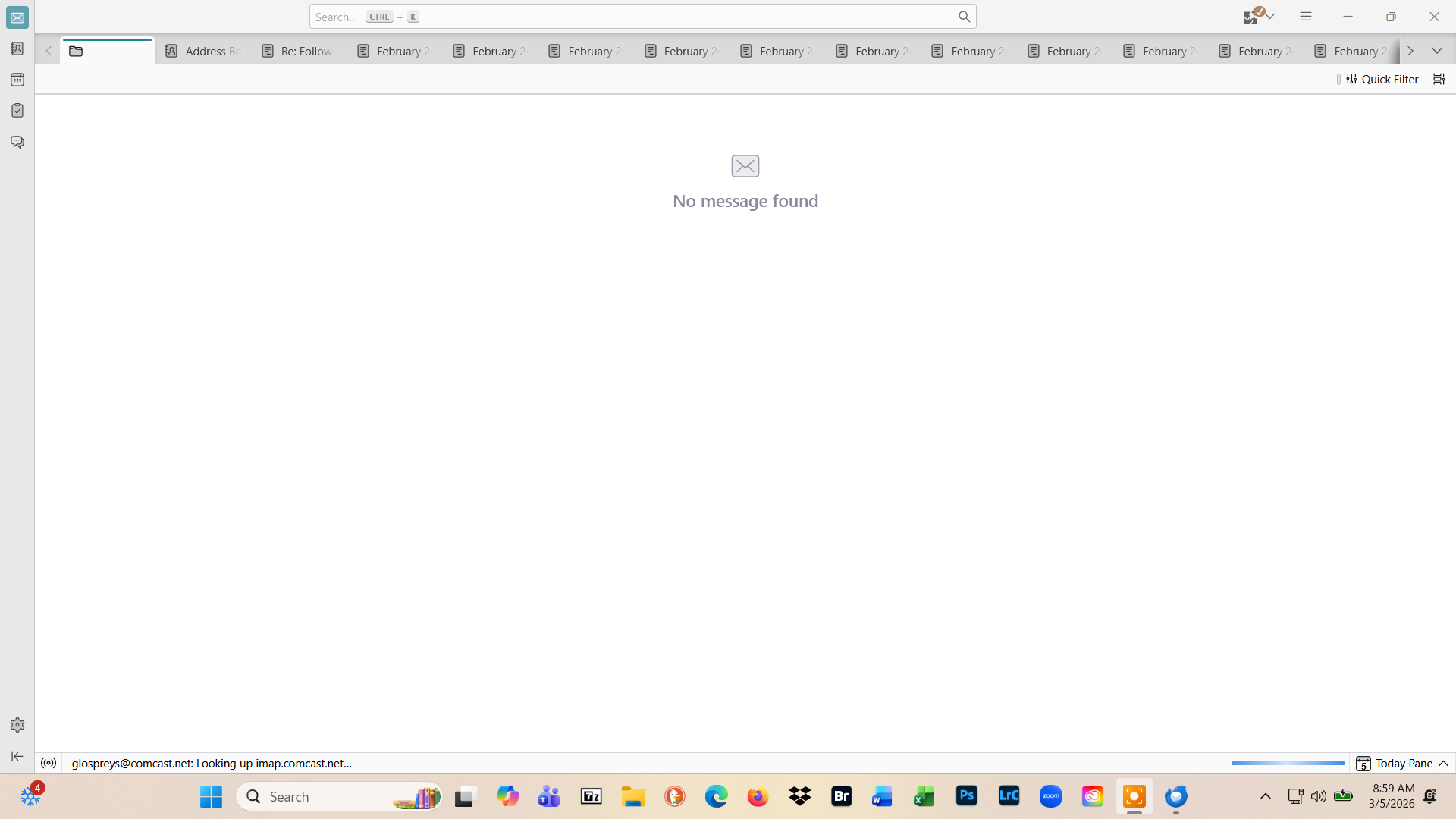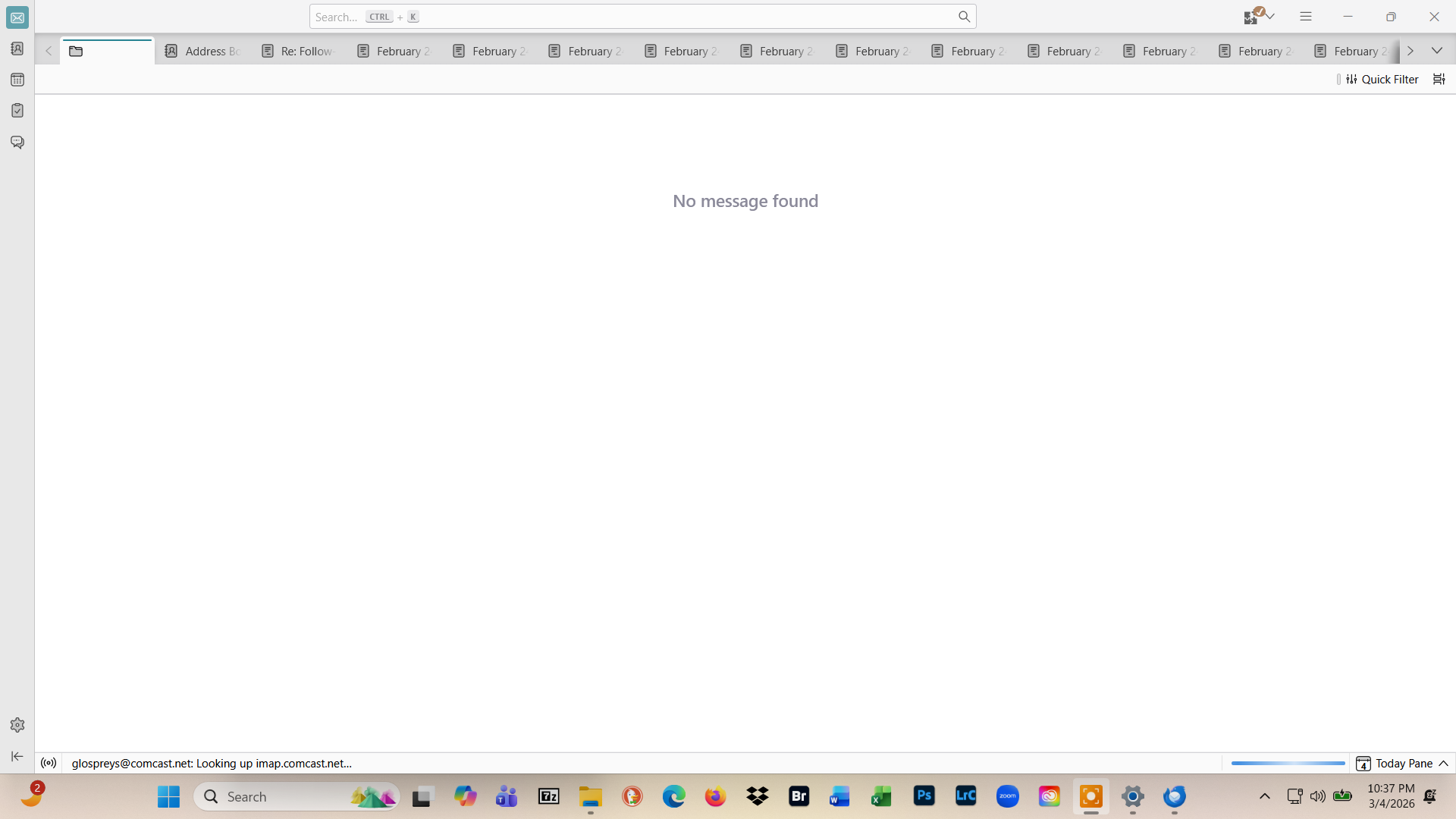 David, Thank you. I've attached a screen shot of the problem. I'm also going to contact Comcast/XFinity, as the new emails are going into their Trash folder also. Maybe the problem starts with them. Also the screen shot will show you the issue with all of the icons (s) that appear at the top of the app when it opens. I don't know how to interpret or control that.