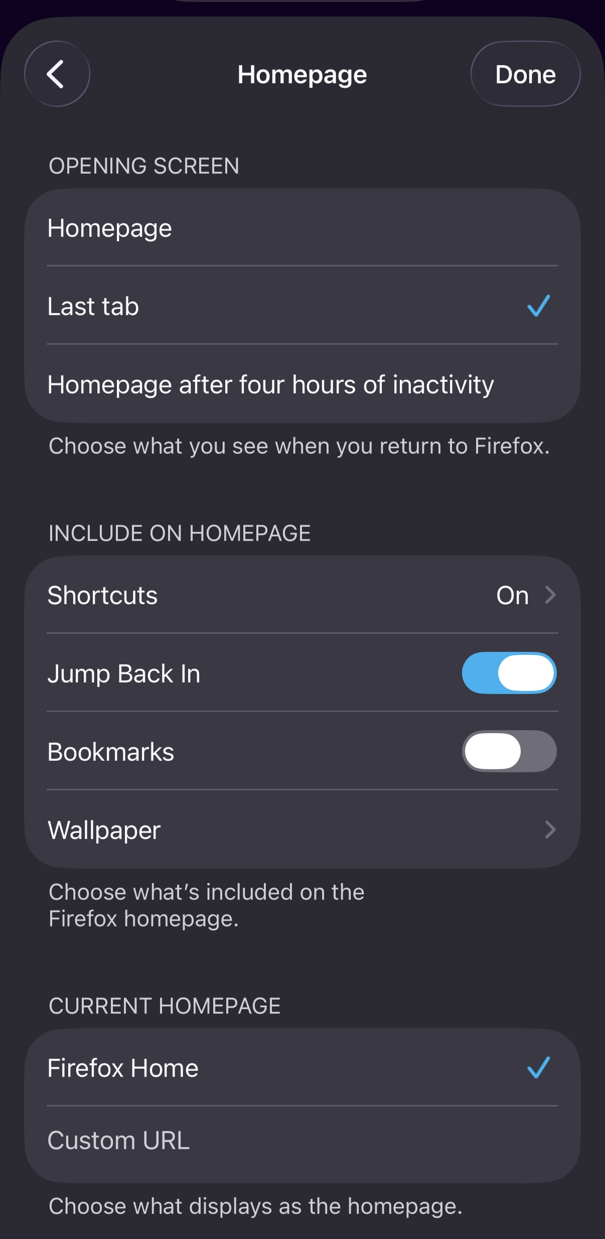 When I set up Mozilla I set homepage to show Jump Back In. i later disabled this option and started pinning shortcuts.