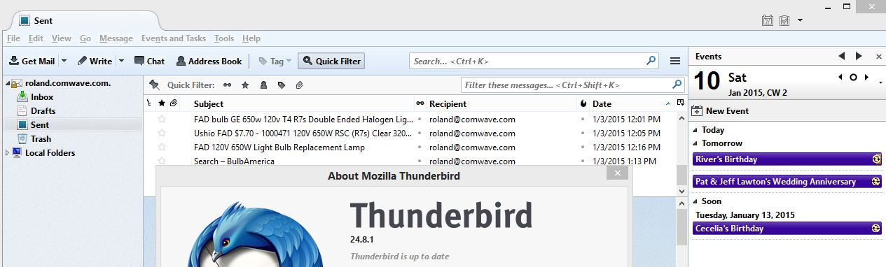 6. You then reinstall from Mozbackups any version from 24_8_1 and back and Thunderbird works