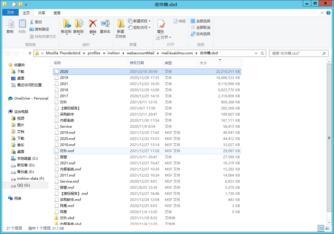 This is Windows 2012 R2. It's an Exchange account, I bought an OWL(https://www.beonex.com/owl/) addon to access my account. File size see the image below: