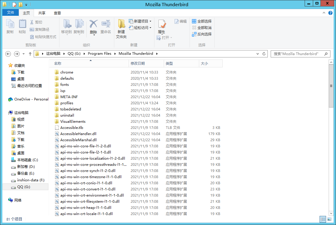 Windows 2012 R2 system is running locally, on local disks. But Thunderbird is installed on a remote disk (Disk G:). It's a VHD(.vhdx) file from a remote file service.