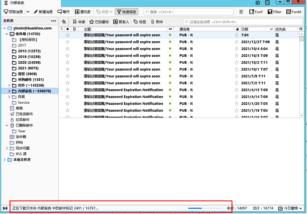 I have many emails in some folders: (image 1) When I switch among them, each click will trigger a long time loading, like: (image 2) The process is very slow. Even sometimes the client UI is hung(no response)...