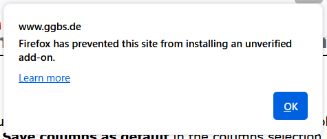 You shan't install this add-on in Firefox but in Thunderbird. R-click on the download link > save target link as .... produces a DefaultColumns.xpi install files you cab drag in the Add-ons Manager tab.