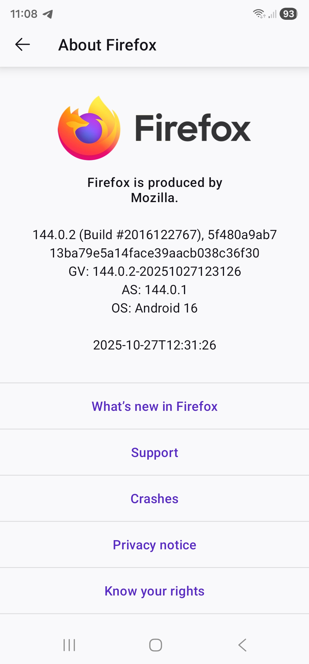 Previously, in the shortcut screen, you could swipe left right to display the other eight shortcuts. This no longer works. I have to tap showall to display all the shortcuts. Additionally the showall setting should be remembered, you shouldn't have to do two taps to get to the second list. Firefox version info attached Galaxy S23 Ultra, SM-S918B/DS Android 16, one UI 8.0 Regards Rob Carter