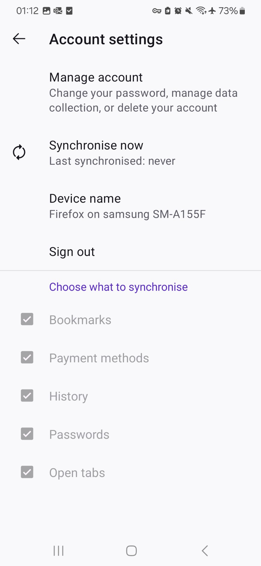 On my Android phone, the data is still there, but when I tap “Synchronize now,” nothing happens either. I’ve tried signing out and signing back in multiple times, but still nothing works.