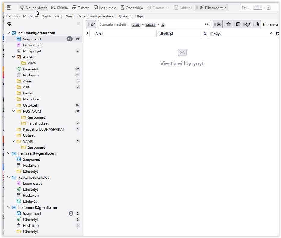 Thunderbird 148.01.1 (64bit) and just collected new emails can't be seen on the screen