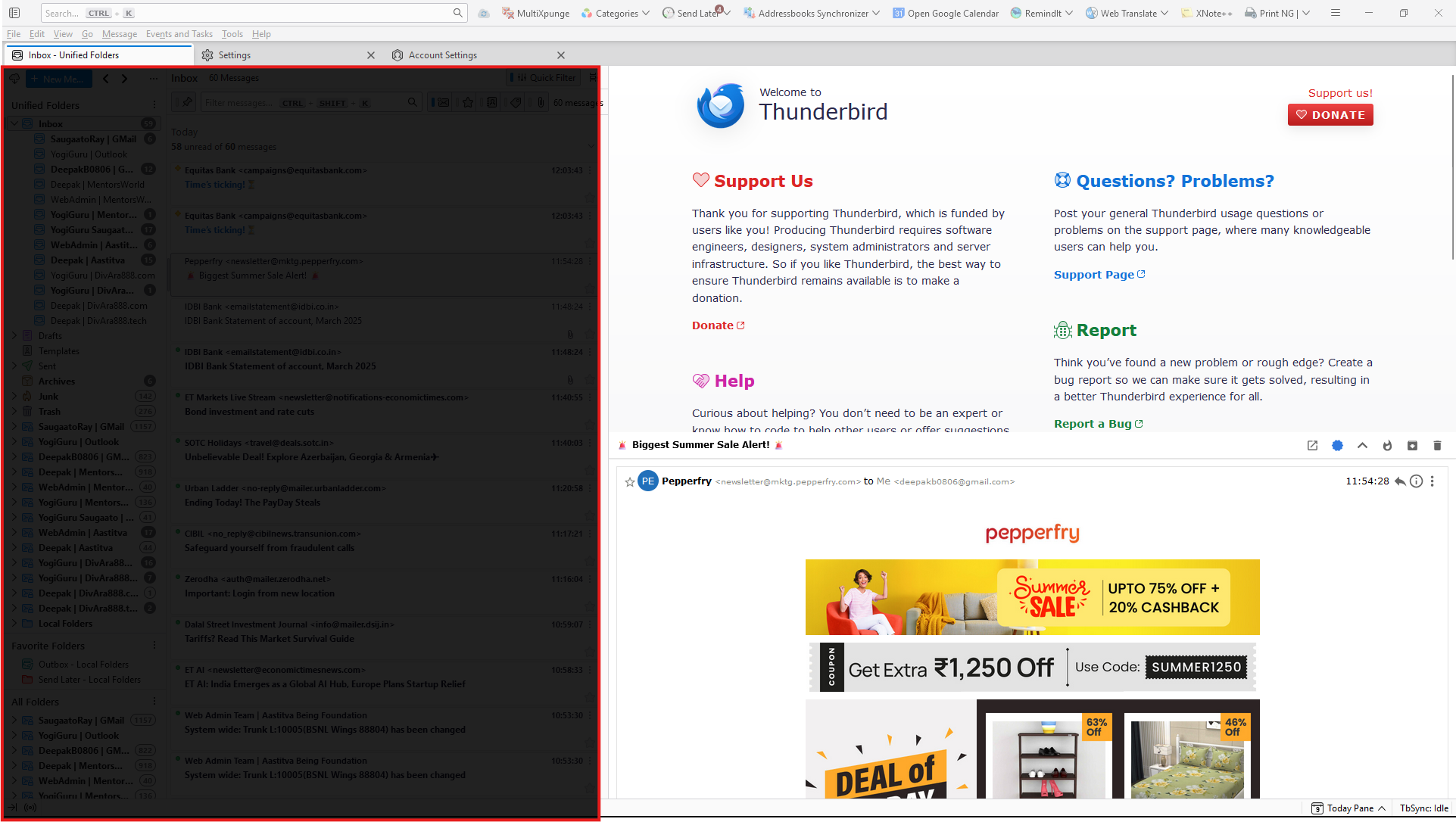 That appears when you start thunderbird. as soon as you click the first message, that goes away. You can also select settings>general to turn off the start page (although I do not recommend that; the start page has information that is informative).