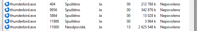 PC zrestartován i vypnut, thunderbird odinstalován a nainstalován, ESET vypnut a problém stále přetrvává