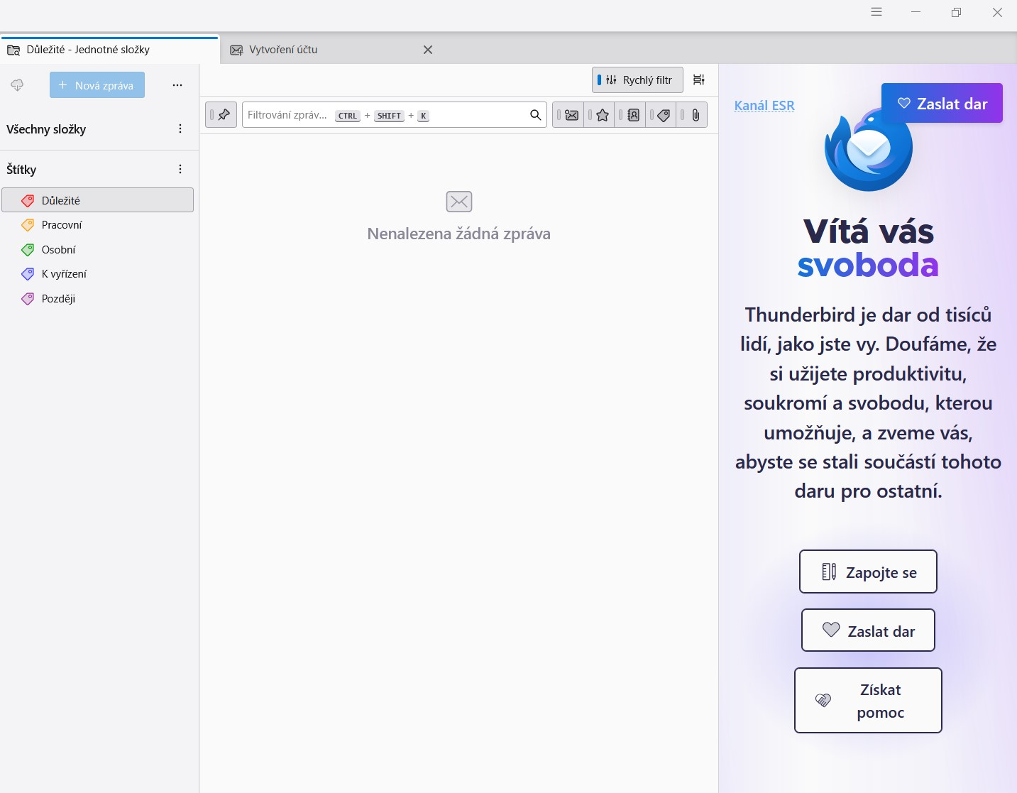 Pravdepodobne ste si vytvorili NOVÝ PROFIL Thunderbirdu. Preverili ste aspoň koľko profilov máte Thundrbirde vytvorených?