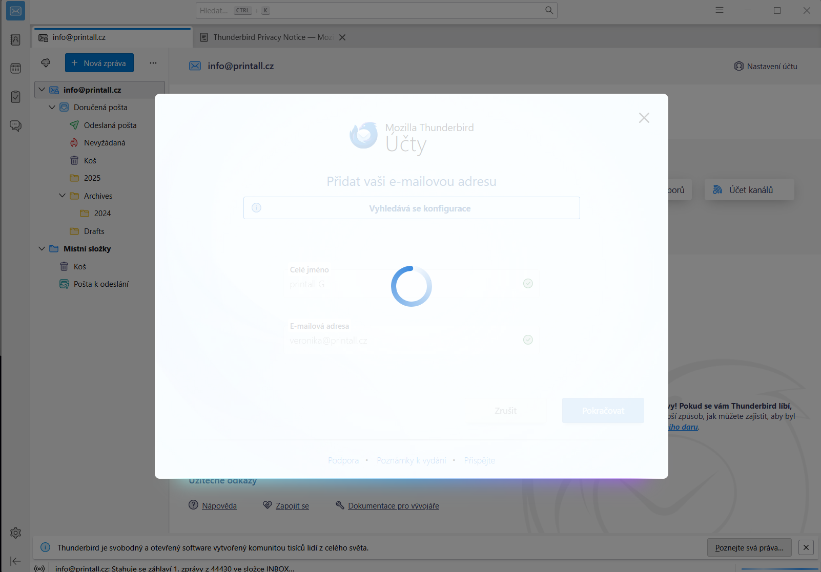 Dobrý den, po updatu na novo mi nejde přidat další email. Po vyplnění informací okno zamrzne.