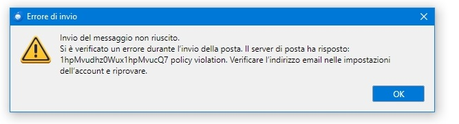 Contatta il tuo provider email. Ti sta bloccando l'invio per una violazione dell condizioni d'uso.