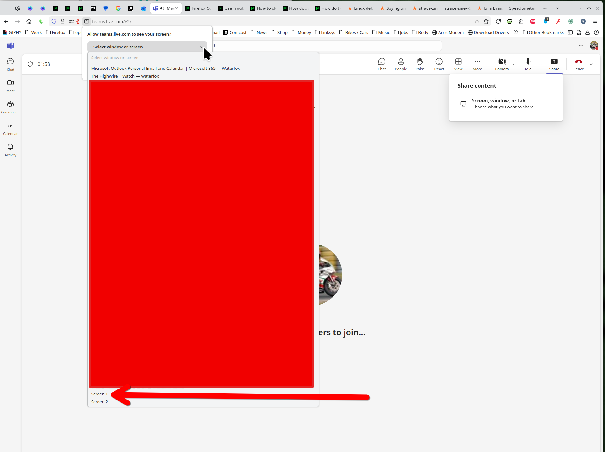 Hey Nicole, You have not demonstrated any issue. I'm able to share my desktop in Teams. see screenshots Zoom test doesn't allow sharing during a test, but I'm sure it works.