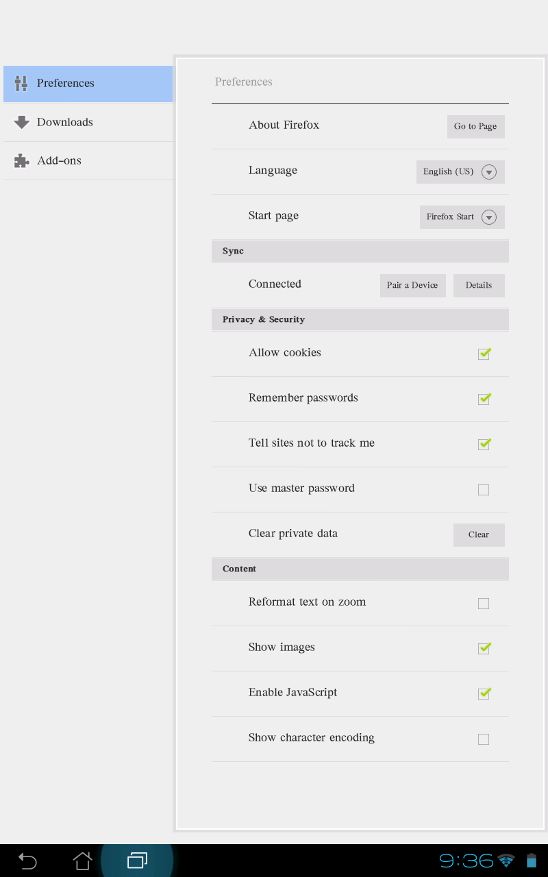 Firefox on asus transformer prime uses roman serif font, not the android or other modern sans serif font. Any way to select fonts, or get back to the system font?