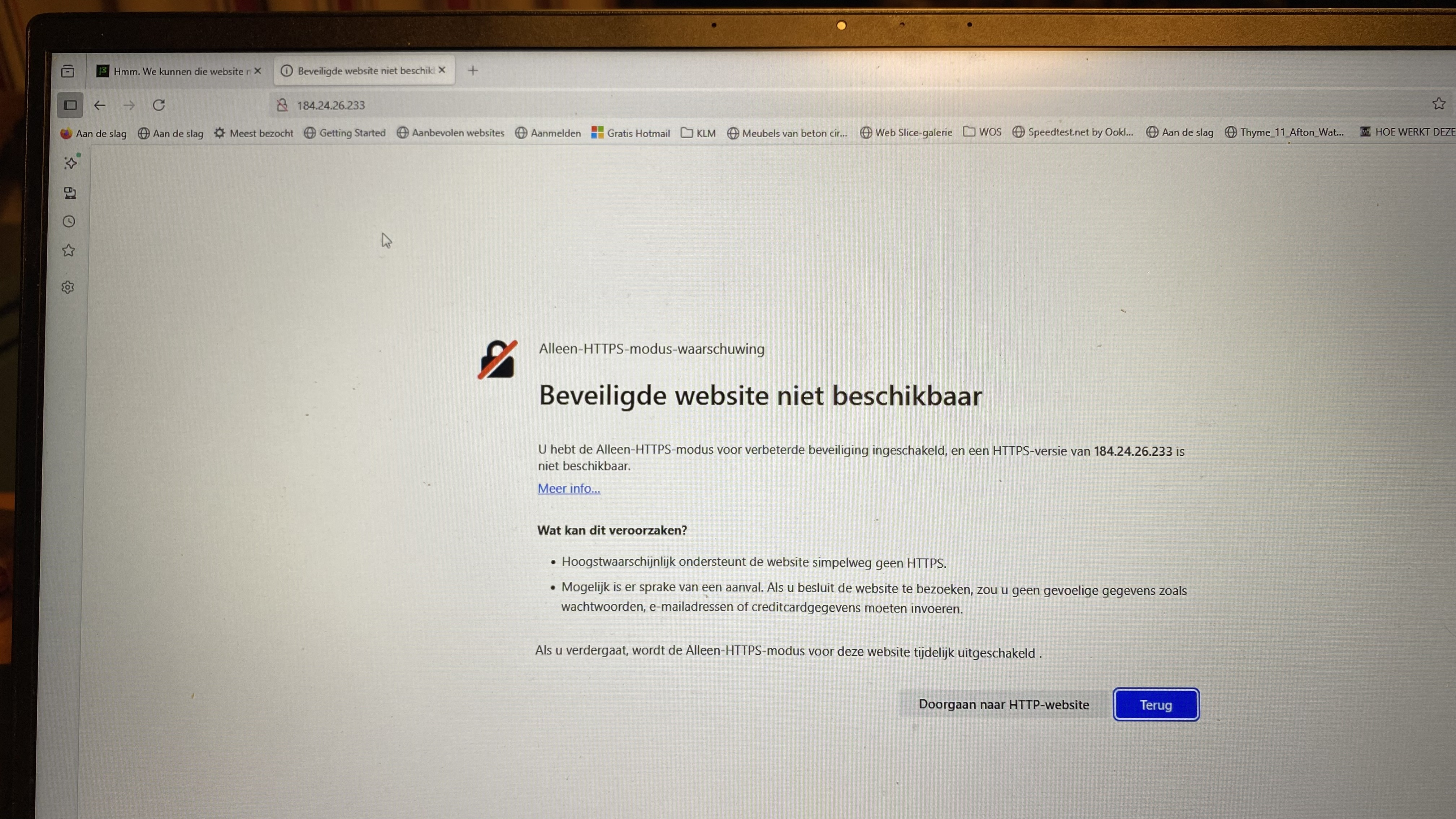 Mooi dat het weer werkt. Ik had mijn vraag gesteld, omdat ik vermoedde dat er iets met de DNS-configuratie aan de hand was. Mocht het weer eens gebeuren, kijk dan of de instelling DNS over HTTPS kan helpen door een andere DNS-provider te kiezen, zoals Cloudflare. Het IP-adres is namelijk van ns.nl en kennelijk is die wel bereikbaar ondanks de foutmelding.