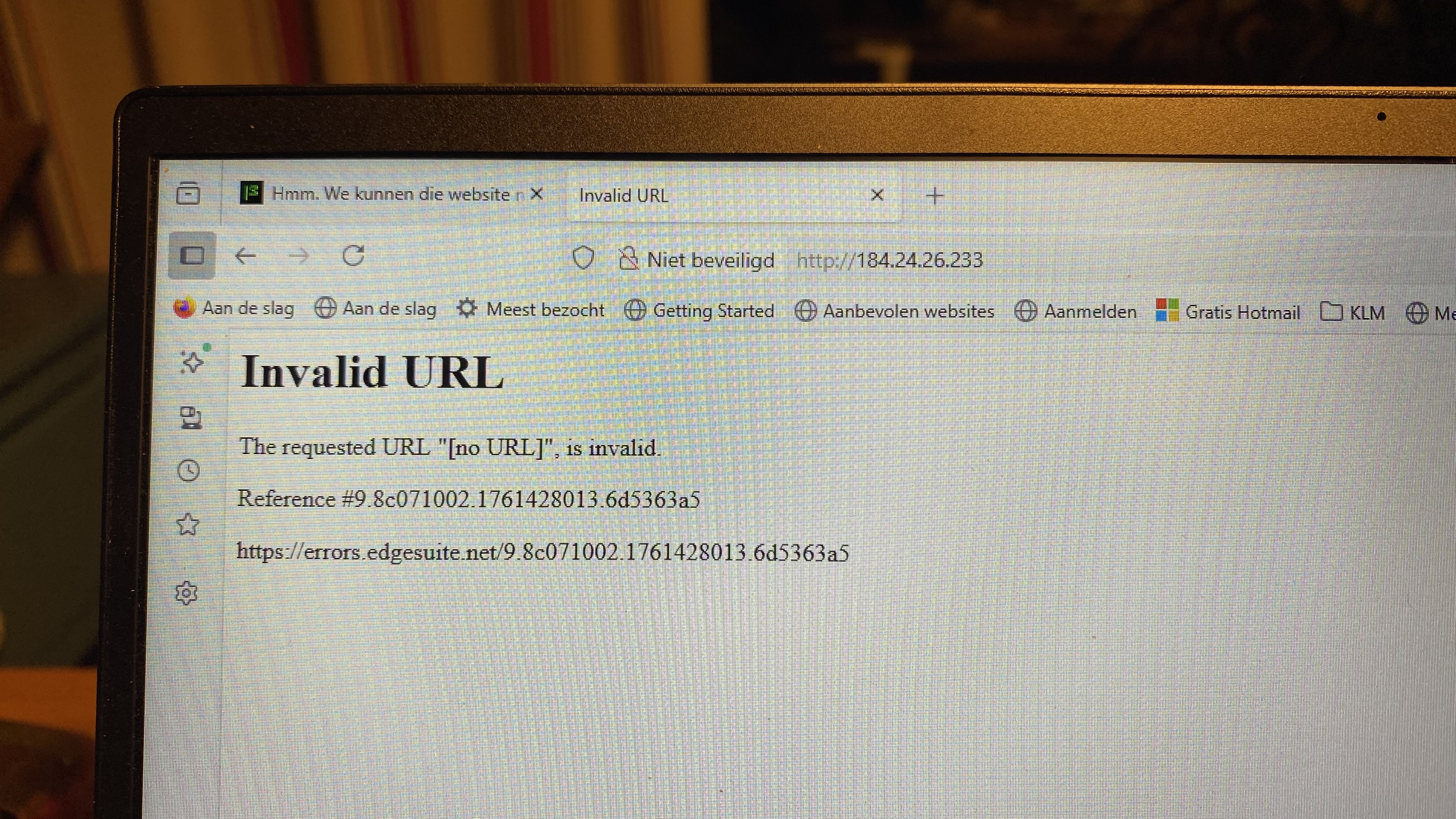 Waarschijnlijk werkte het internet weer toen ik de foto van 184.24.26.233 maakte. Als ik twijfel of ik verbinding heb, gebruikt ik altijd ns.nl om het te testen.