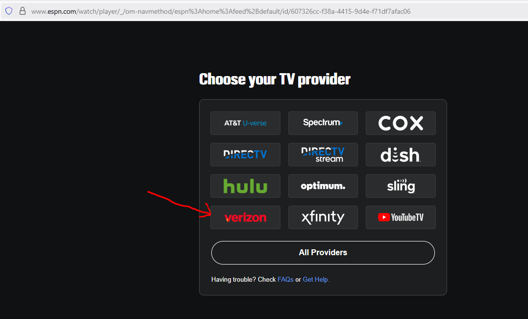 TV Provider, Verizon, sign-in through Other companies "Watch Live TV" issue